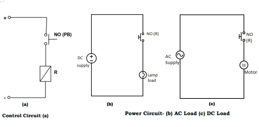To operate DC and AC load with the help of a Push to ON switch and a Switching relay